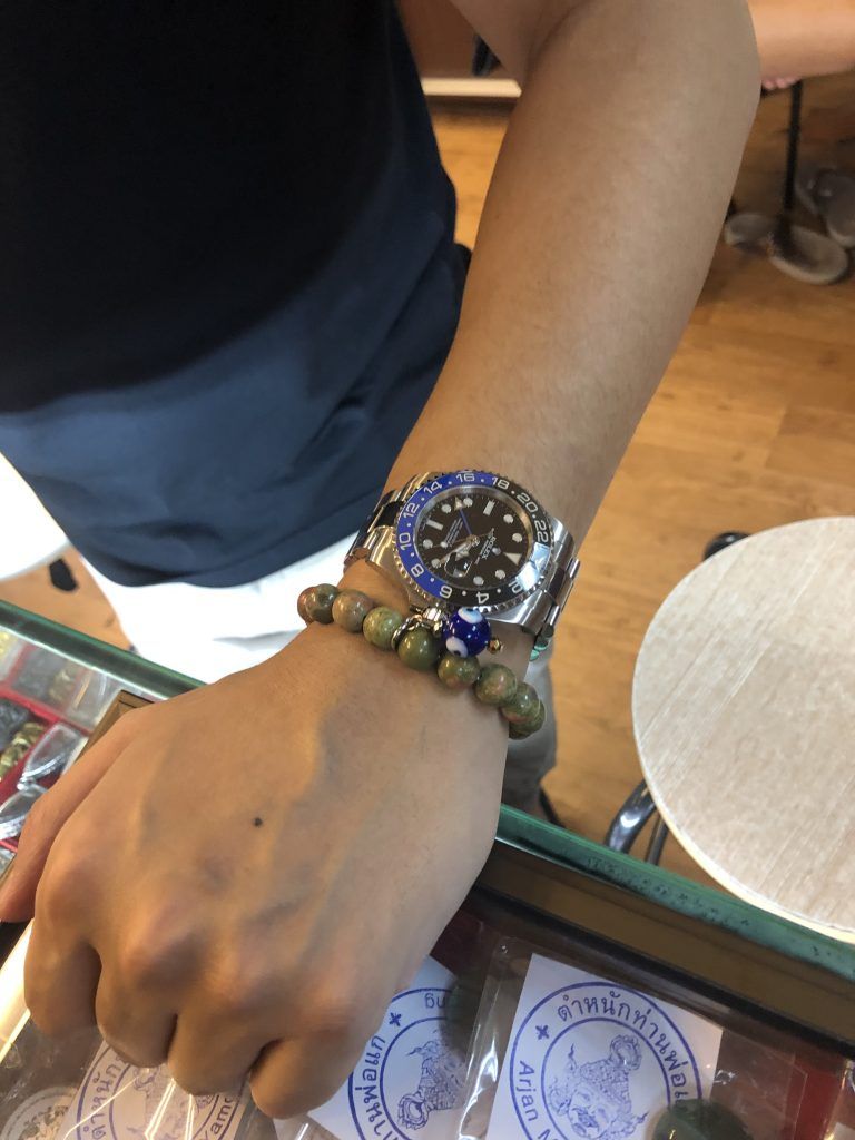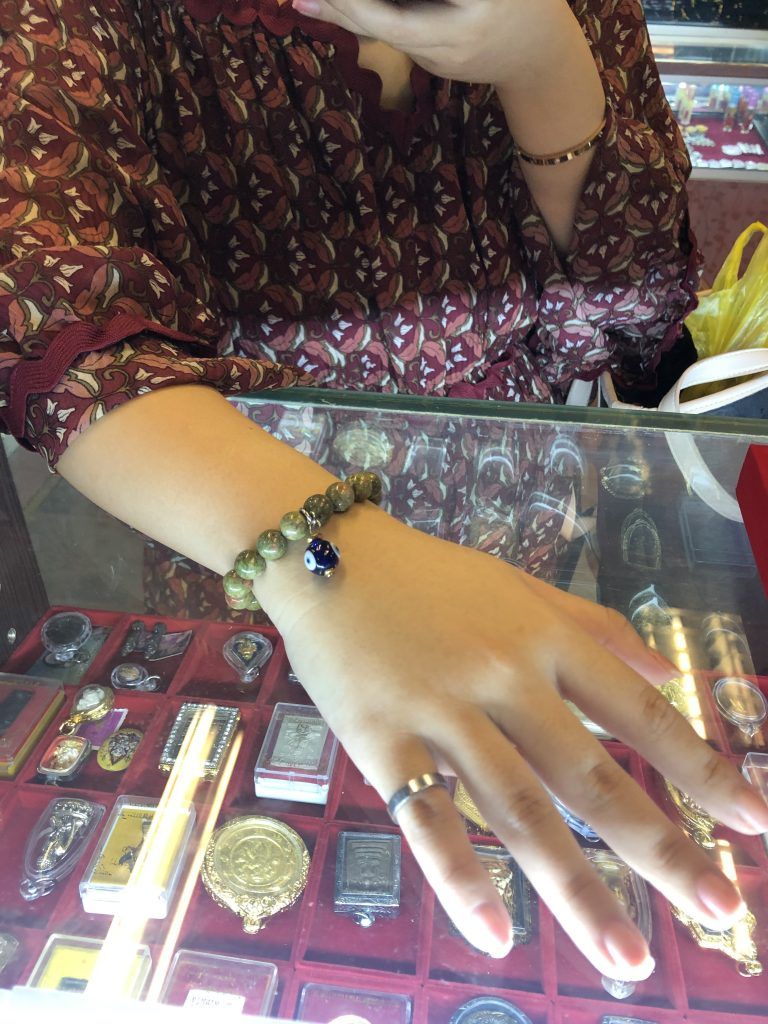 The unakite bracelet with the evil eyes which was blessed by Master Tham on the auspicious planets alignment day based on the thai planets astrology subjected which will be suitable for all people to use for good luck, wealth and emotional well-being.